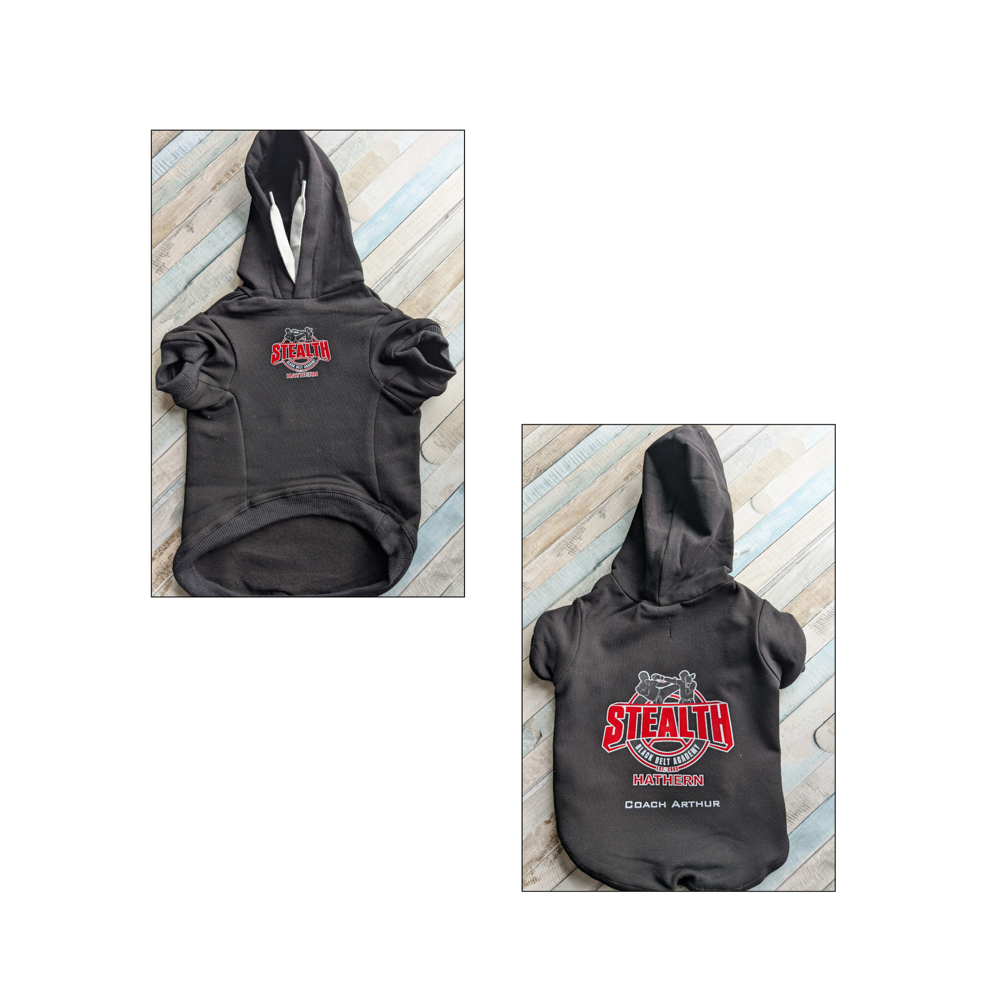 Proof that style isn’t just for humans — this custom dog hoodie was designed to match its owner’s training gear and attitude.